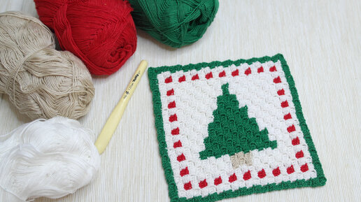 Еще одна схема готова для вязания крючком в технике С2С подставки под чашку для оформления новогоднего стола. На этот раз это подставка с новогодней елочкой со снежинками. О технике вязания крючком С2С. Эта техника вязания мне нравится своей простотой. С ее помощью можно можно создавать полотна с картинками, которые визуально напоминают пиксельные картинки. Ближе с этой техникой можно познакомиться, посмотреть эти 3 видео. О самой технике вязания крючком С2С. О том, как менять цвет по ходу вязания крючком в технике С2С...