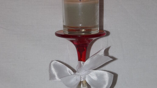 На просторах интернета представлены много новогодних способов декорирования подсвечников. Я решила сделать на этот Новый год подсвечник из бокала. Для этого нам потребуется: * бокал; * игрушка (внутрь бокала); * ткань блестящая; * ленточки; * витой шнур; * украшение; * белая краска; * картон; * ножницы, силиконовый пистолет. Обводим на картоне горлышко бокала, припуская 0,5 см по краям. Вырезаем картон. То же самое делаем с тканью: вырезаем 2 круга - на одном делаем припуск, второй вырезаем точно по размеру круга из картона...