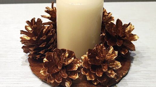 Новогодний подсвечник из сосновых шишек. Пошаговая инструкция с фото для детей.