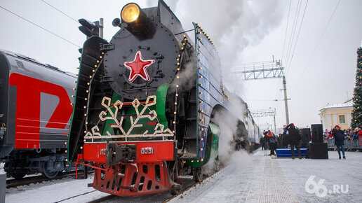 Стилизованный ретропоезд Деда Мороза прибыл на железнодорожный вокзал Екатеринбурга, сообщила пресс-служба Свердловской железной дороги (СвЖД). Его встретили несколько сотен родителей с детьми. На перроне была организована развлекательная программа, в ходе которой Дед Мороз и Снегурочка поздравили уральцев с Новым годом. Поезд Деда Мороза — развлекательный проект РЖД. В его состав входят: раритетный паровоз П36, вагон-лавка с сувенирами, фотокупе, вагон-ресторан...