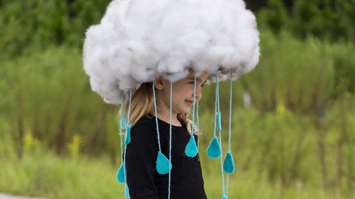 Всем привет! Наверняка у Вас были случаи, когда ребенку нужен костюм, и вы ломаете голову что же придумать! Деньги на покупку дорогого костюма тратить не хочется, ведь надеть нужно всего на пару часов. Предлагаю Вам подборку идей, которые не сложно сделать своими руками, без больших финансовых трат. "Дождевая тучка" Как сделать тучку на голову? Можно обклеить ненужную шляпу кусочками синтепона или ваты, как показано на рисунке. Капли можно вырезать из фетра, фоамирана или связать крючком. "Банан" Здесь придется сшить "банановый" пояс...