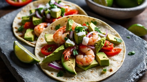 Встречать Новый год с полным желудком и чувством вины за съеденные калории — не лучшая традиция. Но это легко исправить! Подготовили подборку вкусных новогодних блюд, которые соответствуют принципам правильного питания. Тако с креветками и авокадо Ингредиенты Маленькие тортильи (кукурузные или пшеничные) — 8-10 шт. Свежая морковь — 100 г. Огурцы — 1 шт. Креветки королевские очищенные — 400 г. Авокадо — 2 шт. Сок лайма или лимона – 3 ст. л. Чеснок — 1 зубчик. Свежая кинза — 3-4 веточки. Зеленый лук — 2-3 стебля...