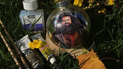 Всем привет! Примерно чуть более чем пол года назад мы стали создавать уникальную коллекцию елочных шариков по мотивам вселенной о Гарри Поттере. Всего было создано около 30 елочных шариков с портретами героев. Заказ был интересный и невероятно сложный. В этом небольшом посте мы решили показать вам несколько видео в которых видны этапы работ по созданию этих портретов. Портрет маслом на елочном шаре Хагрид образ из фильма Гарри Поттер. Немножечко о красках! Мы не скрываем чем рисуем, часто фоткаем работы в процессе, где видно баночки...