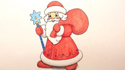 ДЕД МОРОЗ. Как нарисовать Деда Мороза с посохом