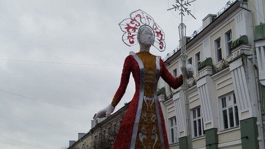 Фигура Снегурочки, установленной около "Салюта" и наделавшая шуму в воскресенье и понедельник, приобрела гораздо менее устрашающий вид и начала привлекать доброжелательное внимание прохожих. Вчера рабочим таки удалось приделать к голове фигуры кокошник, что в значительной степени компенсирует отсутствие волосяного покрова. Также в руках Снегурочки появился огромный посох со снежинкой, что делает сооружение еще более высоким. Лица у...