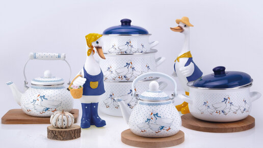 Серия эмалированной посуды с декором "Гуси" от Agness
