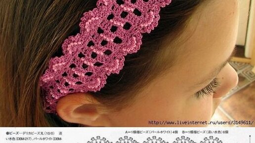 Как связать повязку на голову для девочки крючком в технике - ленточное кружево
