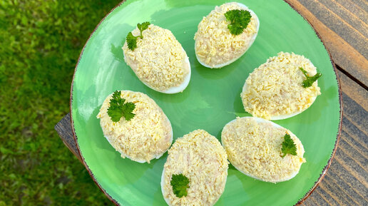 Необычная и очень вкусная начинка в яичных белках: отличная закуска для праздничного стола