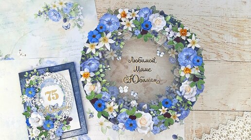 Добрый день. Сегодня с вамиРамзиля. И моя очередь вдохновлять своими работами вас, любителей ручной работы, любителей красоты. Весна уже стала полноправной хозяйкой природы, появились первоцветы, порхают бабочки. Новая коллекция "Небесная роса" идеальна подходит для весенних работ с красивыми весенними элементами и шикарными цветами. Сегодня хочу показать необычную торжественную круглую коробку для подарка и открытку . На крышке коробке простой, но эффектный элемент - "туннель" под прозрачным листом пластика, на котором золотыми и синими буквами приклеена надпись "Любимой Маме...