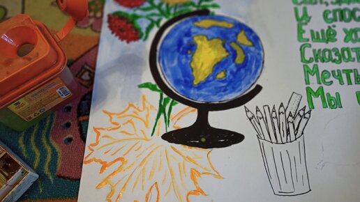 Стенгазета-поздравление ко Дню Учителя своими руками. Нарисовали с дочкой. Много фото в процессе