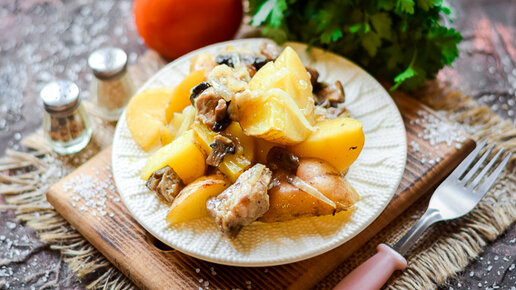 Свинина в духовке с картошкой и грибами - очень простой рецепт