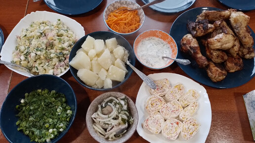 Компания собралась небольшая, за день до застолья дочь с внуками приболели. Переносить праздник мы не стали, потому что часть блюд уже была в процессе приготовления. Но всё равно никто не остался без угощений. Мы с мамой аккуратно упаковали еду и отправили детям с доставкой. Так они тоже смогли отпраздновать, просто у себя дома. И, как всегда, заранее предупреждаю тех, кто не любит смотреть праздничные застолья с классическими семейными блюдами. Можете смело проходить мимо, не тратьте время 😉. А теперь покажу, что мы с мамой приготовили...