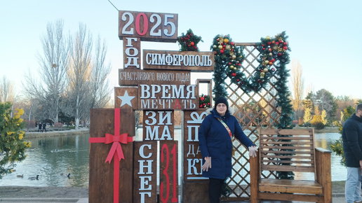 Добрый день, друзья! Сегодня мы ещё немножко погуляем по нашему любимому Симферополю. Он очень красив в новогодние праздники, а как красиво оформлены наши кафе, какая вкусная в них еда и выпечка... В общем, перед самым прудом по центральной аллее Гагаринского парка стоит место для желаний и мечтаний. Не верите? А зря. Кстати, снег намечтали. 4 января в Симферополе снег шёл, причём весьма бурно. Растаял правда быстро, но как мечтали, так и получили. А сегодня был мороз и всё заледенело... Так себе погодка, но -1 всё-таки не -30...