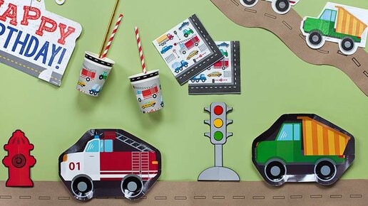 Если вы ищете идеи для праздника по случаю дня рождения мальчика, вам точно понравится замечательная коллекция сервировки и декора с машинками. Герои этой праздничной линейки – машины служб быстрого реагирования: полиция, скорая помощь, пожарная машина, а также самосвал и вертолет. Дополнительные аксессуары – дорожные знаки, светофор, пожарный гидрант. Эта коллекция праздничных товаров – хит среди маленьких виновников торжества, которые обожают красивые большие машины и любой другой транспорт. Машинки – лучшие друзья почти всех мальчишек...