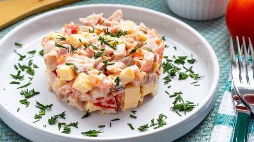 ПРАЗДНИЧНЫЙ салат "МАРКИЗ" с копченой КУРИЦЕЙ и морковью по-корейски.