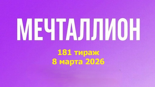 8 марта 2026 года на российском Первом канале состоялся праздничный, 181 тираж, популярной в России лотереи с названием "Мечталлион", в котором была закончена эпопея с розыгрышем призового фонда в 300 000 000 рублей, которые были запланированы на праздничные, 179 и 181 тиражи. Что касается 181 тиража, то сегодня наконец-то кто-то смог забрать приз в 2 000 000 рублей, а еще 18 участников стали сегодня миллионерами...