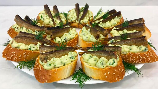Праздничные бутерброды со шпротами и плавленым сыром