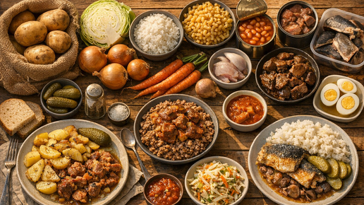 Когда нужно накормить семью и не улететь в чек, выручает простая логика: крупа/картофель + недорогой белок + овощи.