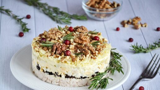 Оригинальный, аппетитный и очень вкусный салат на праздничный стол! Этот салат красиво выглядит, сытный и обычно нравится всем гостям. Гармоничное сочетание нежного мяса курицы, маслянистых орехов, пряного аромата чернослива не оставит равнодушными никого. Выложить салат можно просто в салатнике, но мне кажется, что с кулинарным кольцом он будет выглядеть намного аккуратней и нарядней. Для приготовления салата нам понадобится: -300 г куриного филе -5 яиц -150 г чернослива -100 г грецких орехов -100 г твердого сыра -майонез для заправки -соль по вкусу -зелень для украшения Приготовление...