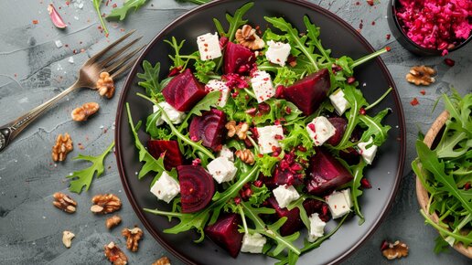 Салат из свеклы с фетой идеально подходит как для повседневного ужина, так и для праздничного стола. Салаты – это не только полезные и питательные блюда, но и отличная возможность экспериментировать с различными ингредиентами и вкусами. Один из таких ярких и насыщенных по вкусу салатов – это салат из свеклы с фетой. Это блюдо сочетает в себе сладость запеченной свеклы, солоноватый вкус феты и свежесть рукколы, а грецкие орехи добавляют приятную текстуру и ореховый аромат. Состав: Для заправки: Способ приготовления: 1...