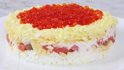 САЛАТ ЦАРСКИЙ С КРАСНОЙ РЫБОЙ И КРАСНОЙ ИКРОЙ НА НОВОГОДНИЙ СТОЛ