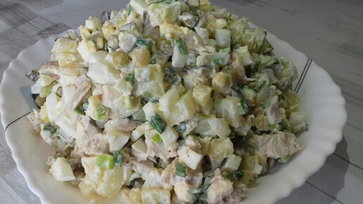 Салат на праздничный стол. Салат с курицей, картофелем и огурцами