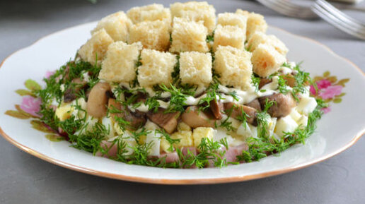 Салат праздничный с ветчиной и сухариками