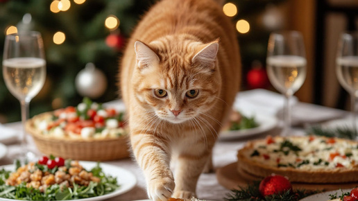 Праздничный стол: какие обычные закуски (оливье, селёдка под шубой) особенно опасны для кошек и почему