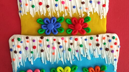 Аппликация из пластилина "Праздничный тортик" из пластилина. Пошаговая инструкция с фото для детей.