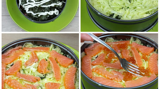Здравствуйте, дорогие друзья! Сегодня хочу поделиться с Вами прекрасным рецептом приготовления торт салата. Мне, например, он нравится тем, что он очень вкусный, готовится просто и подходит на любой праздничный стол. Сначала готовим соус. Смешиваем майонез и творожный сыр. Для приготовления таких торт салатов я использую форму для выпекания. Укладываем в неё отварной рис и смазываем его приготовленным соусом. Сверху кладём порезанный лист нори и соус. Укладываем очищенный и порезанный авокадо , тонко порезанную солёную, красную рыбу ...