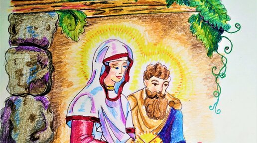 Рисуем Рождество карандашами по раскраске. Её можно распечатать или перевести с экрана. Я считаю. нет ничего зазорного использовать раскраски для начинающих рисовать. А в Рождество какое это удовольствие посидеть с карандашами и, не сильно напрягаясь, сделать такой рисунок-открытку. Я рисовала акварельными карандашами. Мастер класс. А это рисунок Рождества для детей. Мастер класс: А это Рождественский ангел летит и возвещает о празднике Рождества. Рисуем гуашью. Если остановить видео, то схему-рисунок можно срисовать прямо с экрана...