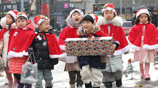 Ликующая атмосфера царит по всему Сеулу: рекламные щиты на рождественскую тематику излучают яркие цвета святок, а сеульцы наслаждаются ночным катанием на коньках на Seoul Plaza. Дети из детского сада в городе Кванджу, одетые как Санта-Клаусы, в среду доставляют пожертвования вместе с елками и подарками, которые они сделали для нуждающихся...