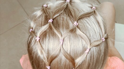 Хвостики оставляем, а все остальные волосы формируем в низкий хвост и фиксируем резинкой. Далее берём левый нижний хвостик и половинку хвостика выше и соединяем их между собой резинкой, вторую половинку с половинкой хвостика выше соединяем резинкой, вторую половинку хвостика с половиной следующего хвостика следили резинкой и половину хвостика с последним хвостиком соединили резинкой.