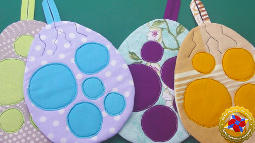 Здравствуйте! В этом уроке, формата статьи, я расскажу, как можно сшить прихватку на кухню "Яйцо дракона" или динозавра, без окантовки, с аппликацией . Я сшила четыре прихватки, вновь тестовый вариант.