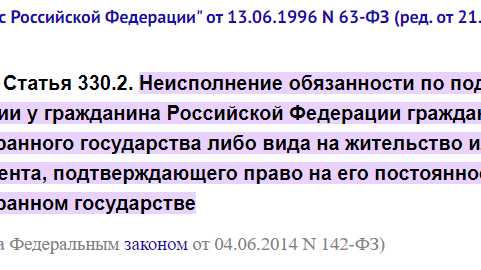 Как не получить штраф за неуведомление о получении ВНЖ в другой стране и избежать уголовной ответственности? Как не получить штраф за неуведомление о получении ВНЖ в другой стране и избежать уголовной ответственности? Причем, сумма штрафа может доходить до 200 000 руб. или сопровождаться обязательными работами*. Несмотря на то, что норма рассчитана на государственных служащих, российский суд может не знать тонкостей зарубежного законодательства, а значит - дело затянется на неопределенный срок.