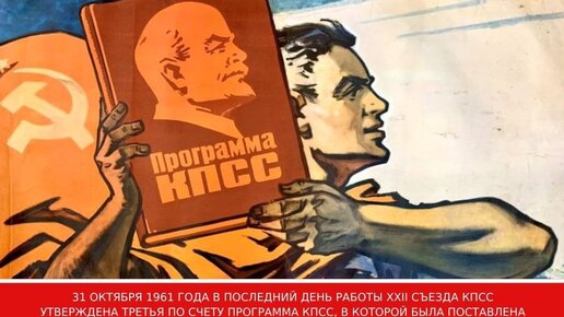 31 октября 1961 года в последний день работы XXII съезда КПСС утверждена третья по счету Программа КПСС