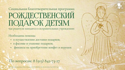 «Рождественский подарок детям» — сделаем чудо вместе! В этом году мы по традиции продолжаем проект «Рождественский подарок детям» — чтобы принести радость и тепло тем, кто особенно в этом нуждается: детям, оставшимся на попечении третьих лиц по разным жизненным обстоятельствам. Рождество — это время чудес. И вы можете стать частью этого чуда! Сейчас...
