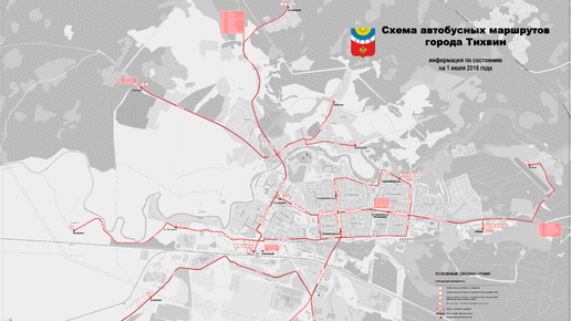 Схема автобусных маршрутов города Тихвин (Ленинградская область)