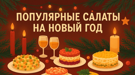 Популярные салаты на Новый год Оливье Король новогоднего стола, без которого не обходится ни одно празднование. Классический рецепт включает отварные овощи, колбасу, яйца, солёные огурцы и горошек, заправленные майонезом. Многие семьи передают свой особый рецепт из поколения в поколение. Селёдка под шубой Многослойный салат с сельдью, который напоминает праздничный торт. Слои включают селёдку, варёный картофель, морковь, свёклу и лук под майонезом. Яркий розово-фиолетовый цвет делает его украшением стола...