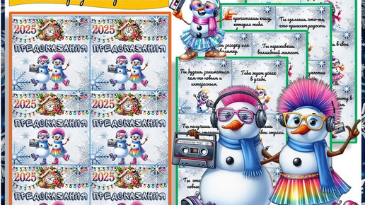 Предсказания на Новый 2025 Год. 30 ярких карточек с предсказаниями для классного часа, праздничного мероприятия.Карточки можно редактировать