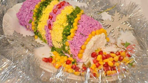Новогодний рецепт: Праздничный салат "Новогодняя хлопушка" с оригинальной подачей