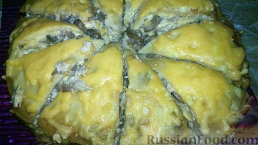 Рецепт на Новый год. Блинный пирог с шампиньонами