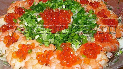 Царский салат с семгой, икрой и креветками к праздничному столу – рецепт приготовления