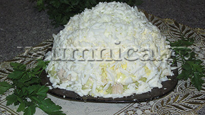 Не за горами новогодние праздники и уже многие хозяйки начинают подбирать салаты к новогоднему столу. Конечно же, салат оливье на протяжении многих лет занимает главное место на столе вместе с селедкой под шубой. Но хочется приготовить еще какие-нибудь новые и вкусные салаты. Салаты с курицей очень популярны. Их можно приготовить как на праздничный стол, так и включить в повседневное меню. Я хочу вам предложить рецепт салата невеста. Главным ингредиентом является куриное филе. Готовится салат очень легко и просто...