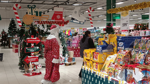 Собственно говоря, да.. Вот не вовремя я зачахла, но дома сидеть не по мне. Поэтому вчера всё равно заглянула в ТРЦ. А там новогодняя атмосфера, с удовольствием поделюсь ей с вами. Заглянула в Фамилию, вот ни разу ничего здесь не купила. Народ умудряется подешевке здесь отличные вещи прикупить, но не я. Но инсталляция к празднику у них красивые, праздничные. Всякие милые штучки можно прикупить для украшения, но цены по мне так не маленькие. А может "Fix price" нас избаловал низкими ценами. Затем я пошла в гипермаркет "О'кей"...