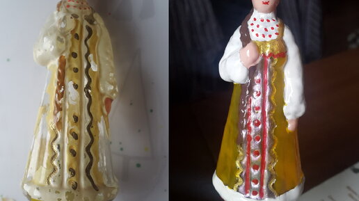 Реставрация ёлочных игрушек. Мои первые пробные варианты реставрации. На блошиных рынках мне очень часто попадаются битые ёлочные игрушки, а так же игрушки со слезшей от времени краской. В зависимости от того, где хранились игрушки, краска на них может быть как новая, а может полностью испортиться. Если вы хотите сохранить свои старинные ёлочные игрушки , НЕЛЬЗЯ их хранить в подвала, чердаках, гаражах и в прочих неотапливаемых помещениях. Так же краски на ёлочных игрушках боятся долгого прямого солнечного света...