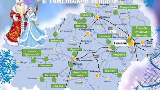 Сказочный волшебник и его внучка будут встречать юных друзей в Гомеле, районных центрах, Национальном парке «Припятский» и в других населенных пунктах. На зимней карте Гомельской области обозначены точки, где можно увидеть персонажей, любимых с детства...
