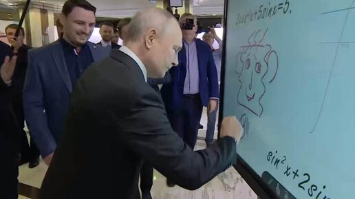 Во время участия в в пленарном заседании форума «Сильные идеи для нового времени» 29 июня президент России Владимир Путин нарисовал на интерактивной доске необычную человеческую голову. Он решил сделать это после того, как ему напомнили о его рисунке кошки 10 лет назад на сенсорной панели. Тогда президент нарисовал легендарную "кошку, вид сзади" на сенсорной панели западного производства. Новый рисунок он сделал уже на отечественной технике...