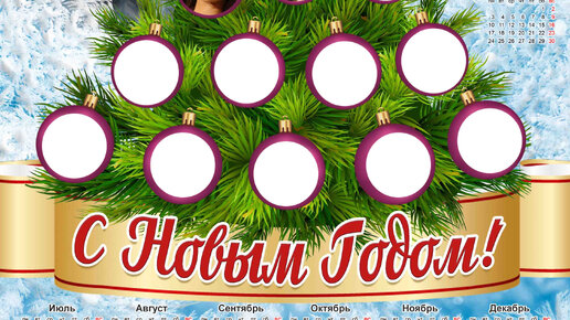 Календарь формата А3 "С Новым годом!"для вставки фотографий на 2024 год.
