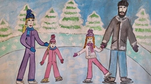 Рисунок моя семья. Рисунок новогодняя семья. Моя семья и новогодняя сказка рисунок. Карандаши и краски